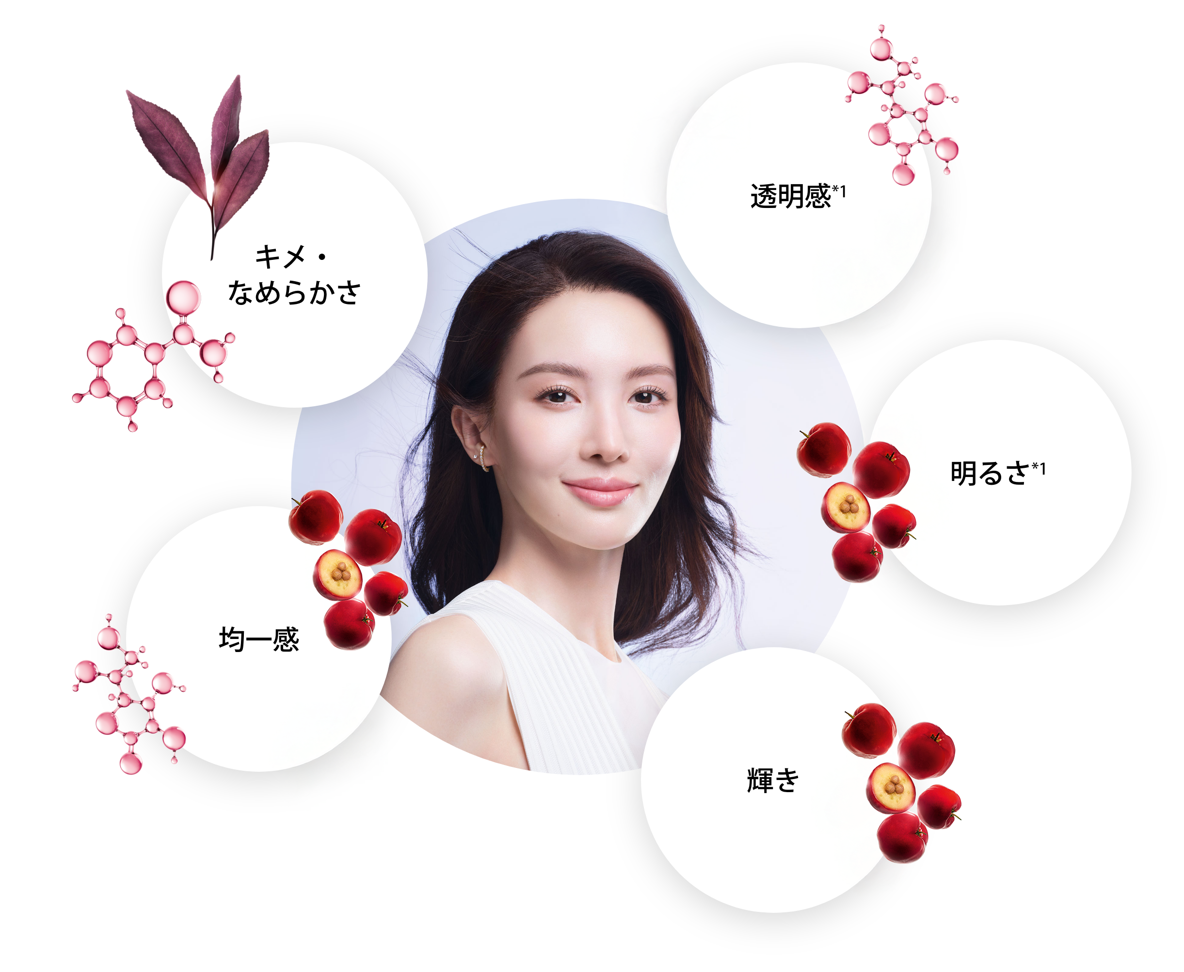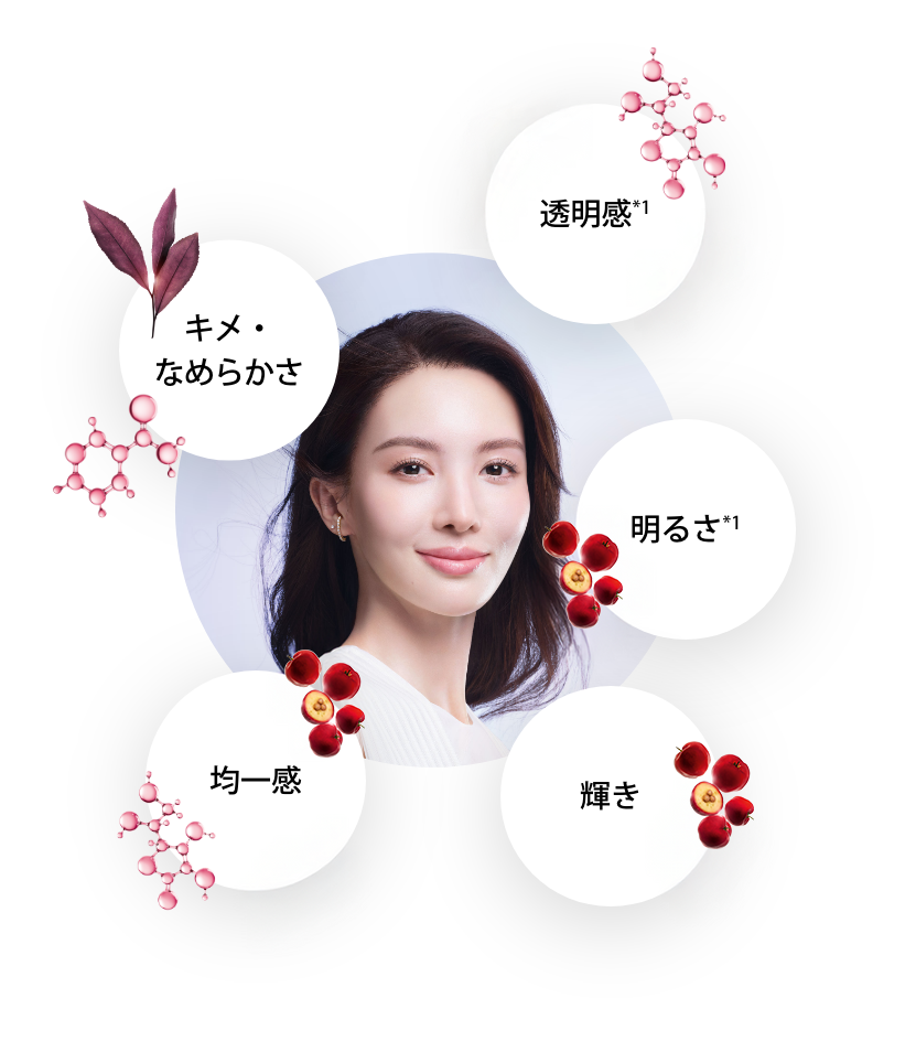 透明感 *1、 明るさ*1、 なめらかさ、輝きもそなえ
